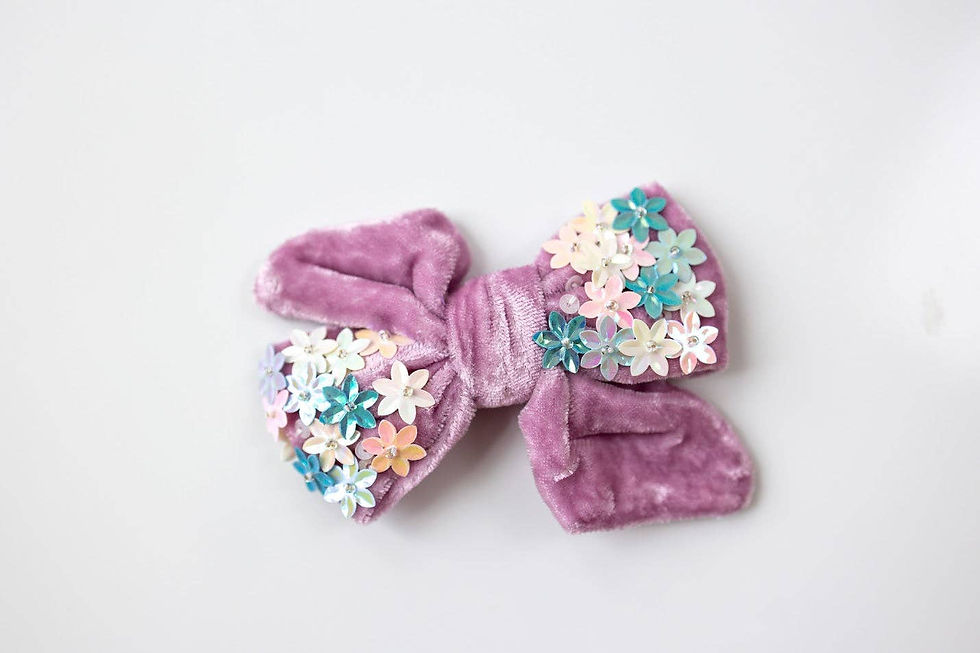 Velvet Flower Sequin Hair Bow- lavender